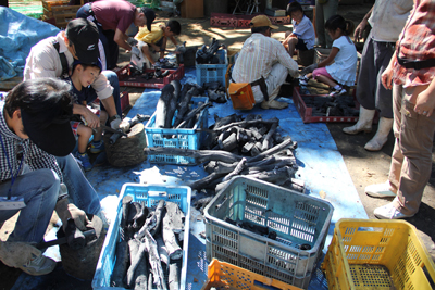 窯出し後、炭の整形作業。スズカの里山(徳居町)で
