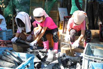 「窯出し、炭の整形」体験