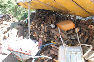 炭にする木材は、近隣の里山から切り出してきたものです。