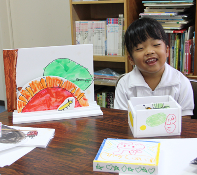柚月ちゃんは小1。時間があったので、スチレンボードを使って、小箱もつくりました。