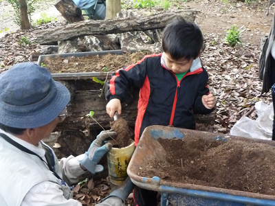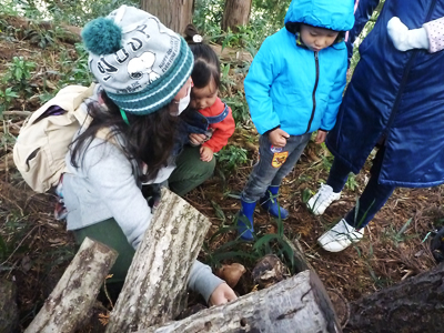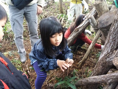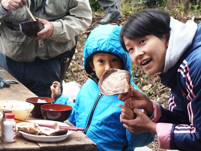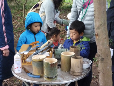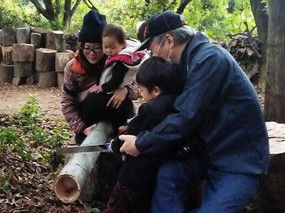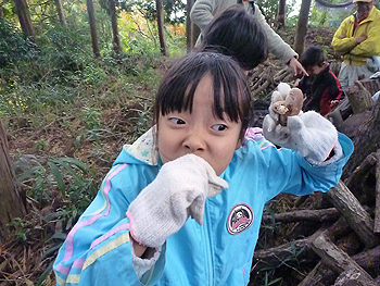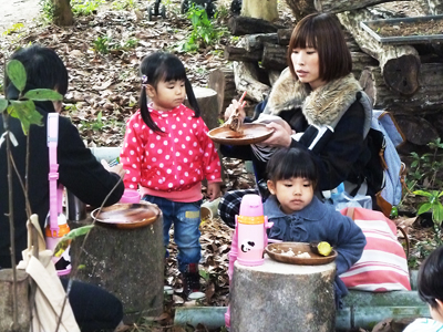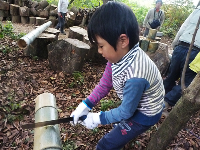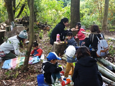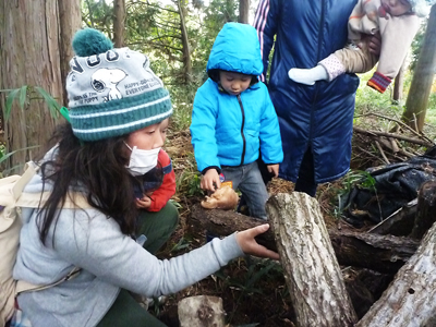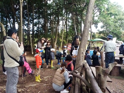 11月16日、市内から、0歳児から小学生までの親子40人位が集まり、「里山で遊ぼう」企画が行われました。