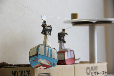 御在所ロープウエイは、手動式で、ハンドルを回すと動くように工夫されています。