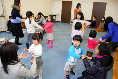 そんな中で、冬のわらべうた遊びの会“まめっちょ”にはたくさんのお友達が集まりました。