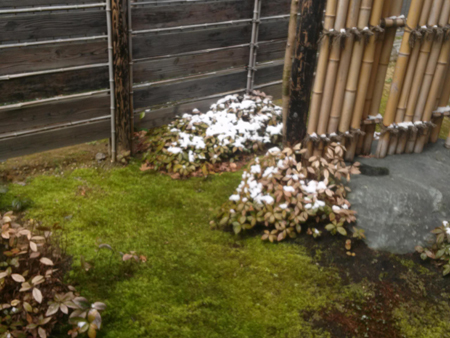 清鈴庵の庭も薄らと雪景色