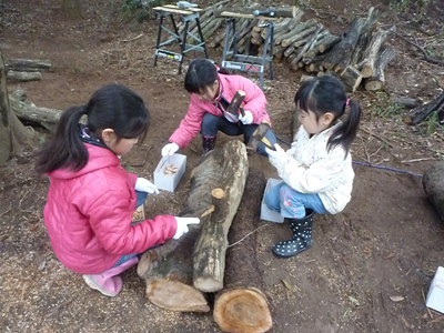 まずは、種菌を叩く木づち選びから。 自分の手に合う大きさを選びました。
