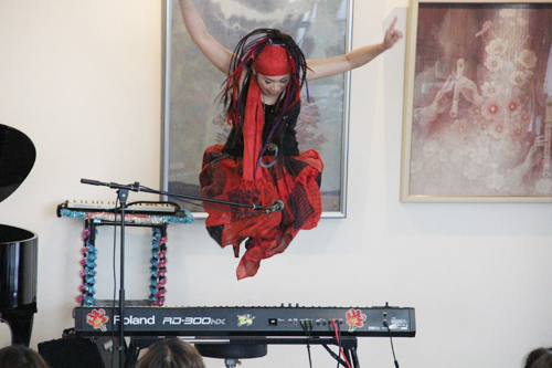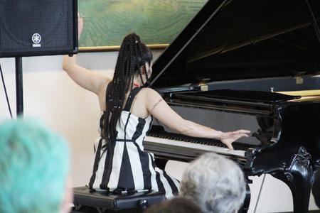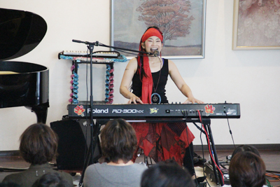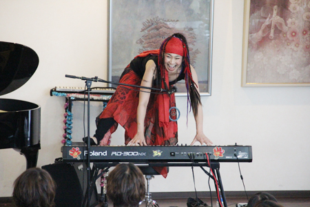 次にピアノの前に座り、「さくら さくら」のフレーズを取り入れた曲「Warm emolle SAKURA」を演奏。
