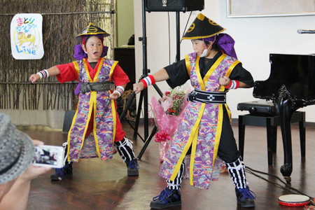 二人の男の子が衣装姿で踊ります。