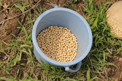 大豆を手にして