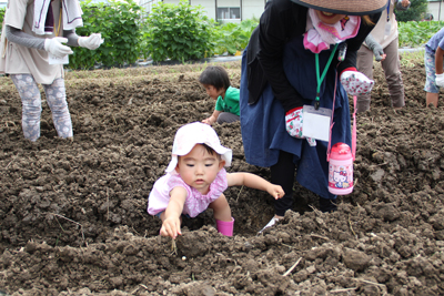 参加するお母さんたちにその動機を聞くと「食育!」「食育!」「食べ物がどんなふうに出来るのか知ってほしい!」と言います。はたけで収穫してそれをその場で食べられるのもその一つ。はたけへの関わりが食べ物への関心へ自然と向いていくようで、食べてみよう、味わってみよう、という意欲にもつながるようです。