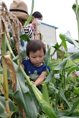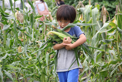 次に、5月に苗を植えたトウモロコシの収穫。