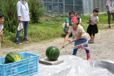 大豆蒔き!トウモロコシ収穫!スイカ割り!