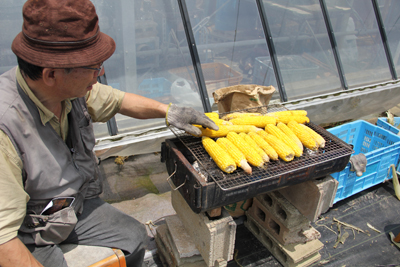食べてない人もいて、急遽とれたてのトウモロコシを焼いてくれました。