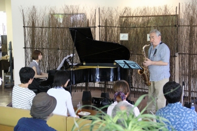 途中、フルートも交えて、ジャズや映画音楽を中心に演奏。