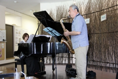 サックスは3月の「ふれあいコンサート」で演奏した葛原良和さん、ピアノは田原綾子さん。