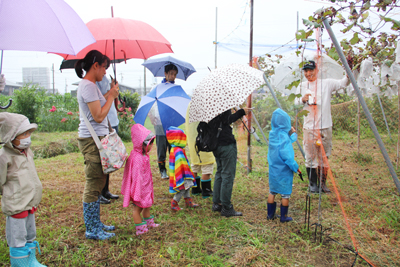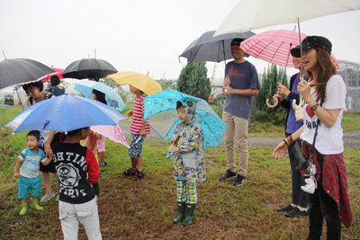 この天候でも、子どもたちはカッパ姿でやる気満々――