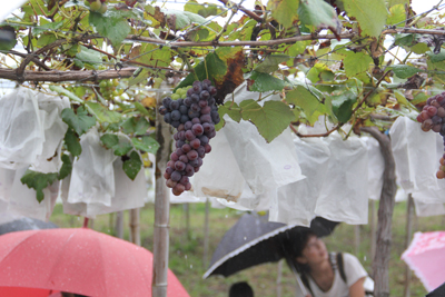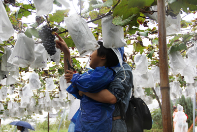 雨ニモマケズ、ぶどう収穫! 天晴れ ママさん!