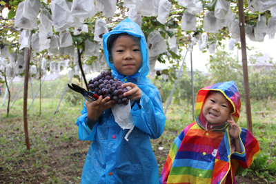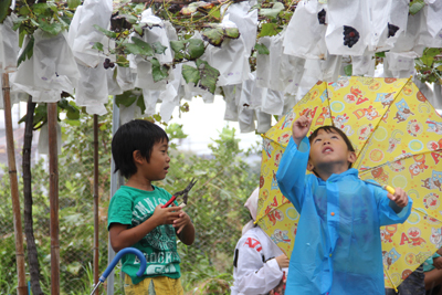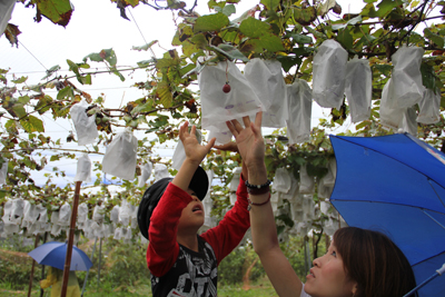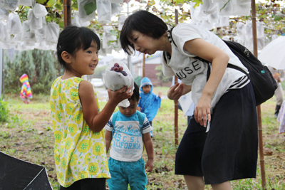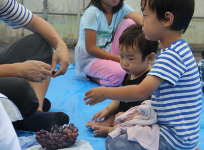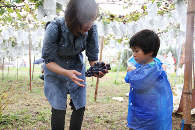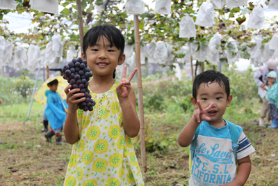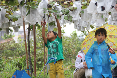 子どもは、ハサミを持って、お目当てのブドウをチョキン!