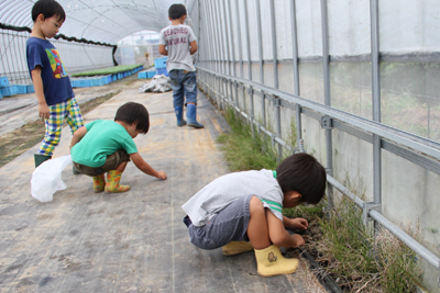 一人でどんどん収穫していく子も。ぶどうと違って、採りやすいようです。