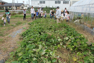 さて、スタッフの大平さんの挨拶が終わって、ぞろぞろとサツマイモ畑に
