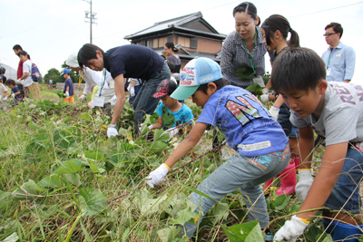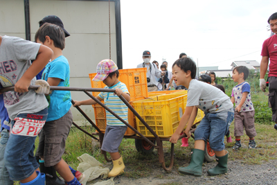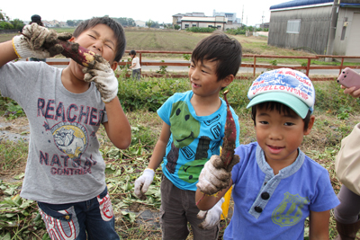 様子です。でも、それぞれ畑にはいり、芋の蔓をひっぱり出しました。