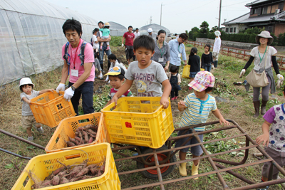 皆さん、たちまち、はたけに散って、芋掘りまくり―。
