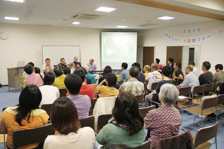 秋晴れとなった10月18日日曜午後。鈴鹿カルチャーステーションで、『やさしい社会国際フォーラム2015 “自分達で創る自分達の持続可能な社会”』が3人の講師を招いて開催された。福岡、静岡、神奈川など遠方からの参加者や地元の議員さんなども加わり、3時間を越える熱いフォーラムとなった。