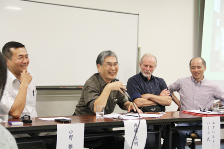 「環境先進国ドイツでは自分達で街づくりすることが活発に行われている。日本でも3.11以降、エネルギーや食糧も地域で生み出す動きが始まっている。昨今政治経済の動きから私たちは大きな転機を迎えている。…」とフォーラムの主旨と講師陣を紹介した。