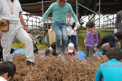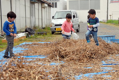 ブルーシートに枯れた枝豆が山のように用意されていました。