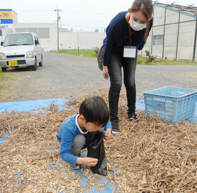 ひとしきり遊んだ頃に、諌山さんが「カブトムシの幼虫を掘るよ!」