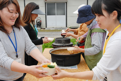 薪で炊くご飯やカレーに何か感激の様子。