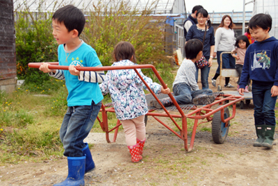 リヤカーで遊んでいたり、