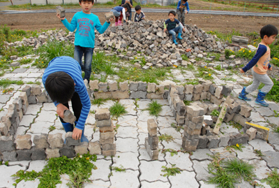 なんと、ここでは、ブロックを積み上げて、基地を作っていました。