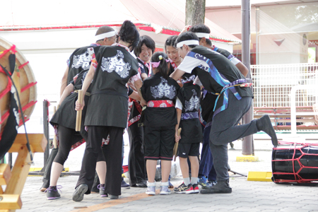 日頃の練習成果を披露しようと、円陣を組んで気合を入れて・・