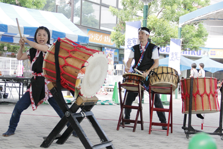 その会場の一角で、今年もSCS和太鼓塾“晴鈴”の発表演奏がありました。