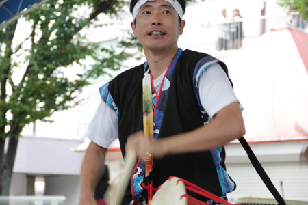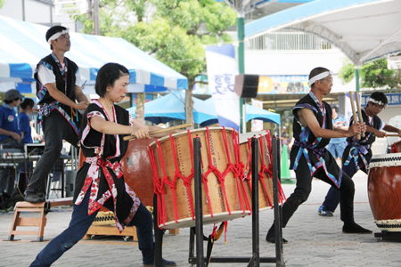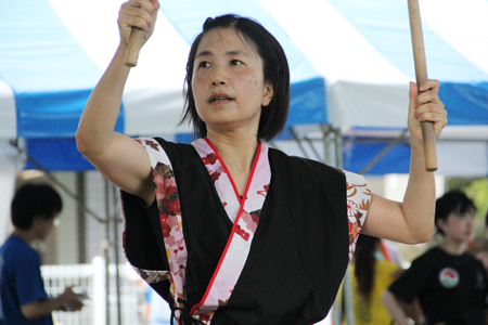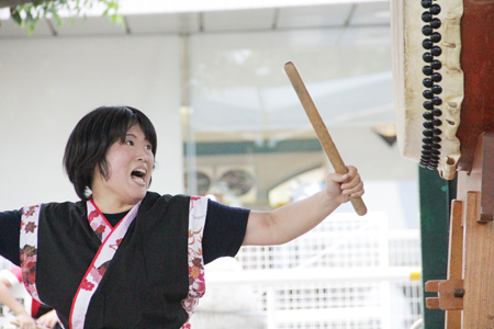 女性メンバーが交互に入れ替わり大太鼓を叩いていきます。
