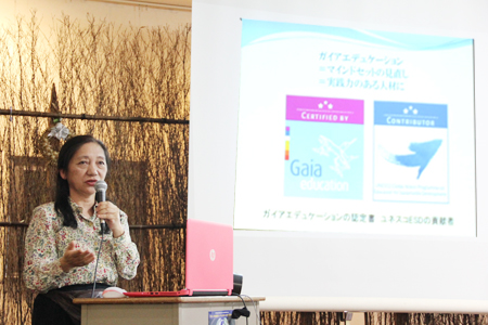 最後に主催者であるNPO法人えこびれっじネット日本GEN−Japanの代表・片山弘子氏から、GEN−Japanの活動を紹介し、来春より、ユネスコ認定の教育プログラムがアズワン鈴鹿コミュニティを舞台に開催されることなどを伝えた。
