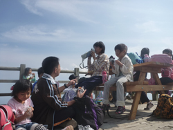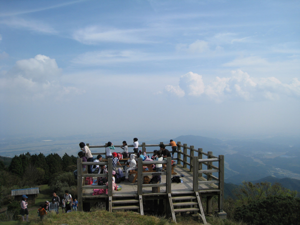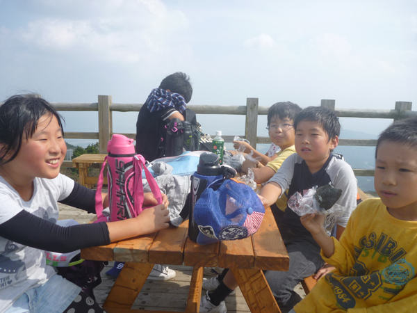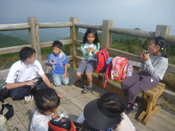 頂上では展望台があって、早くついたチームからお弁当をたべました。眺めも良く爽快です。