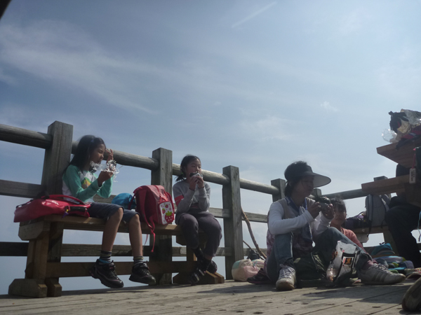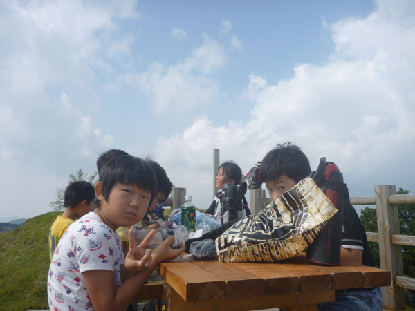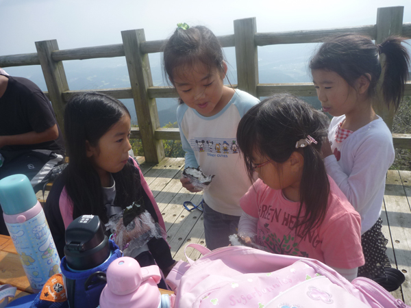 一番早い子は1時間5分。最後の子は1時間50分。全員無事頂上に着きました。
