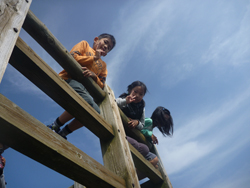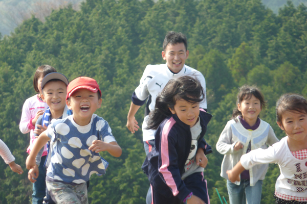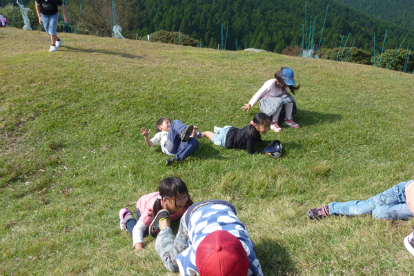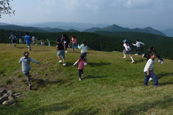 お腹が満足したら頂上の草原では鬼ごっこが始まりました。