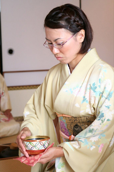 お点前は、裏千家茶道教室で稽古を積んできた生徒さんたち。この日が初のお点前という方もいましたが、固くもならず、自然と振舞ったおもてなしで、お茶席もゆったりとした雰囲気で和菓子と抹茶を味わえたようです。