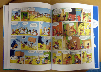 なるほど、アステリクスの本のコマ割りを見ると整然と並んでいる。日本の漫画では画面に変化をつけるために大きなマスをとったり、擬音や効果音を手描き文字で表現して視覚効果を狙っているが、それがない。基本はテキストであり、見せるより読ませる漫画のようだ。