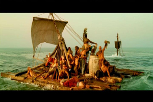 漂流する海賊たちのワンシーンは、フランスの画家・ジェリコーの代表作『メデュース号の筏(いかだ)』のパロディだった。