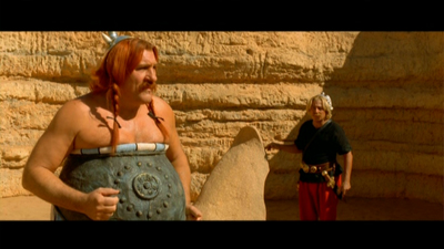 映画は、紀元前50年のエジプトが舞台。我がままなクレオパトラが、シーザーの鼻を明かしてやろうと、砂漠のど真ん中にわずか3ヶ月で豪華な宮殿を建てる約束をする。シーザーがエジプト人を馬鹿にしたので、怒ったクレオパトラが、エジプト人がいかに偉大であるか、証明するための賭けとなった。この無理な計画を命じられるのが建築家のニュメロビスだ。彼は、フランス地方のガリア人を訪ね、魔法を使って建設の実現を図ろうとする。魔法の薬を調合できるのがパノラミクスで、お供にアステリクスとオベリクスがいる。3人のガリア人をエジプトに迎えて、工事はみるみると進んでいくという展開。