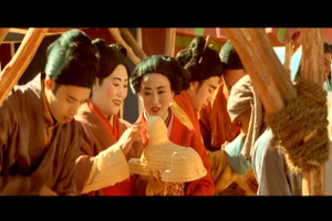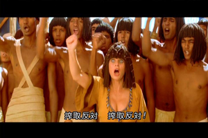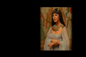 エジプトの壁画は、人物など側面描写(横顔)が多い。クレオパトラが横顔を描く宮廷画家に「いつも横顔ね。正面から描いて」と注文をつける場面で、その時のポーズは「モナリザ」になっていた。クレオパトラが意識してポーズをとる仕草には、笑ってしまった。(特に指のポーズは意識的か? モナリザの手はまだ未完成という説もあり、ダビンチもこの手のポーズには苦労したという話も聞くくらいだから)