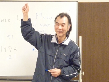 ただし 「ギャルソン!」という呼び方は既にに古く、今は、「ムッシュ!」とか「シル ヴ プレ!」と呼ぶそうだ。(会場の皆さんも実演した)