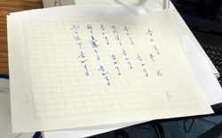 原稿用紙は先生の詩が自筆で書かれたと紹介された。