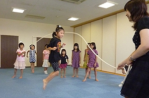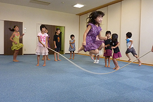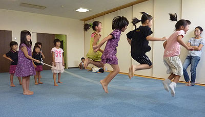 まずは一人ひとり順番に縄に入って飛んでいきます。