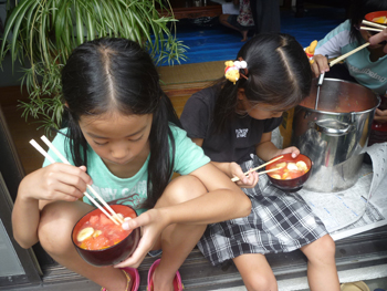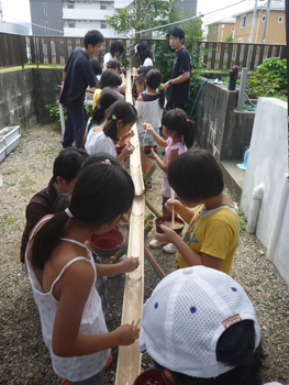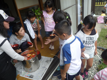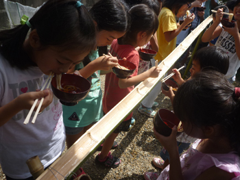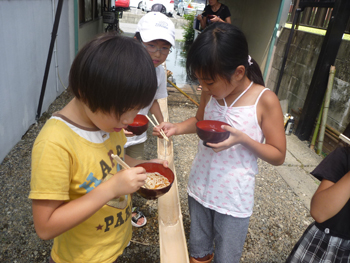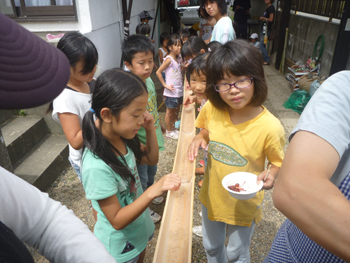 (鈴鹿カルチャーステーションの近くにあるコミュニティハウス江口宅で流しそうめん)