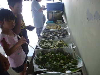 はたけ公園で収穫したシソ・なすび・ゴーヤ・玉ねぎ・ピーマンをどっさりてんぷらにしてくれました。