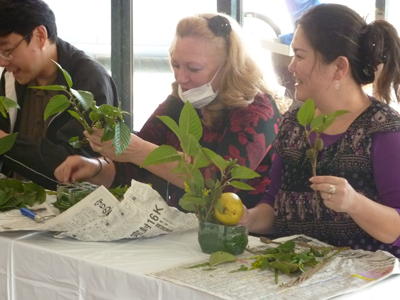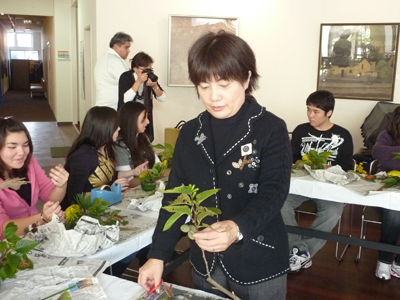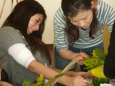 「日本文化を学ぼう、楽しもう」という「NPO法人愛伝舎」さんの企画「日本楽」の第二弾「生花コース」に、ブラジル人の高校生、先生たちが、11月20日、鈴鹿カルチャーステーションを訪れました。二日前にも、「日本楽」の第一弾で茶道体験に訪れています。